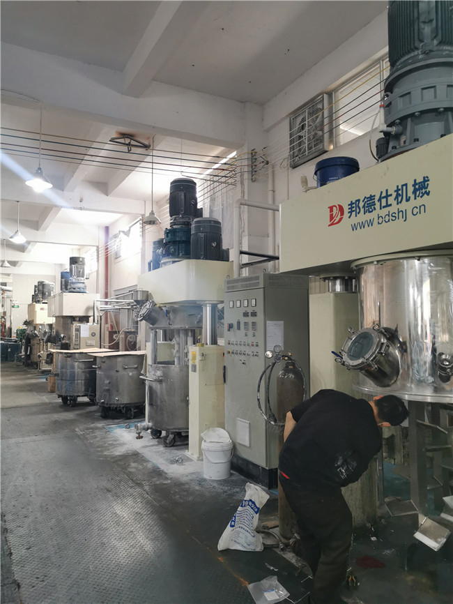 行星攪拌機是一種新型高效的勻質攪拌混合設備,采用獨特的槳葉設計、先進的攪拌模式和傳動原理等創新技術,其具有極大的輸出扭矩,特別適用中高粘度和觸變性比較高的物料(如膠粘劑、硅膠、鋰電池漿料等)進行非常徹底的混合。攪拌槳和分散軸公轉同時自轉,攪拌無死角,使物料上下和水平高速翻滾流動,分散盤又對物料不斷剪切、打散,物料極短時間內就可達到混合均勻的效果。